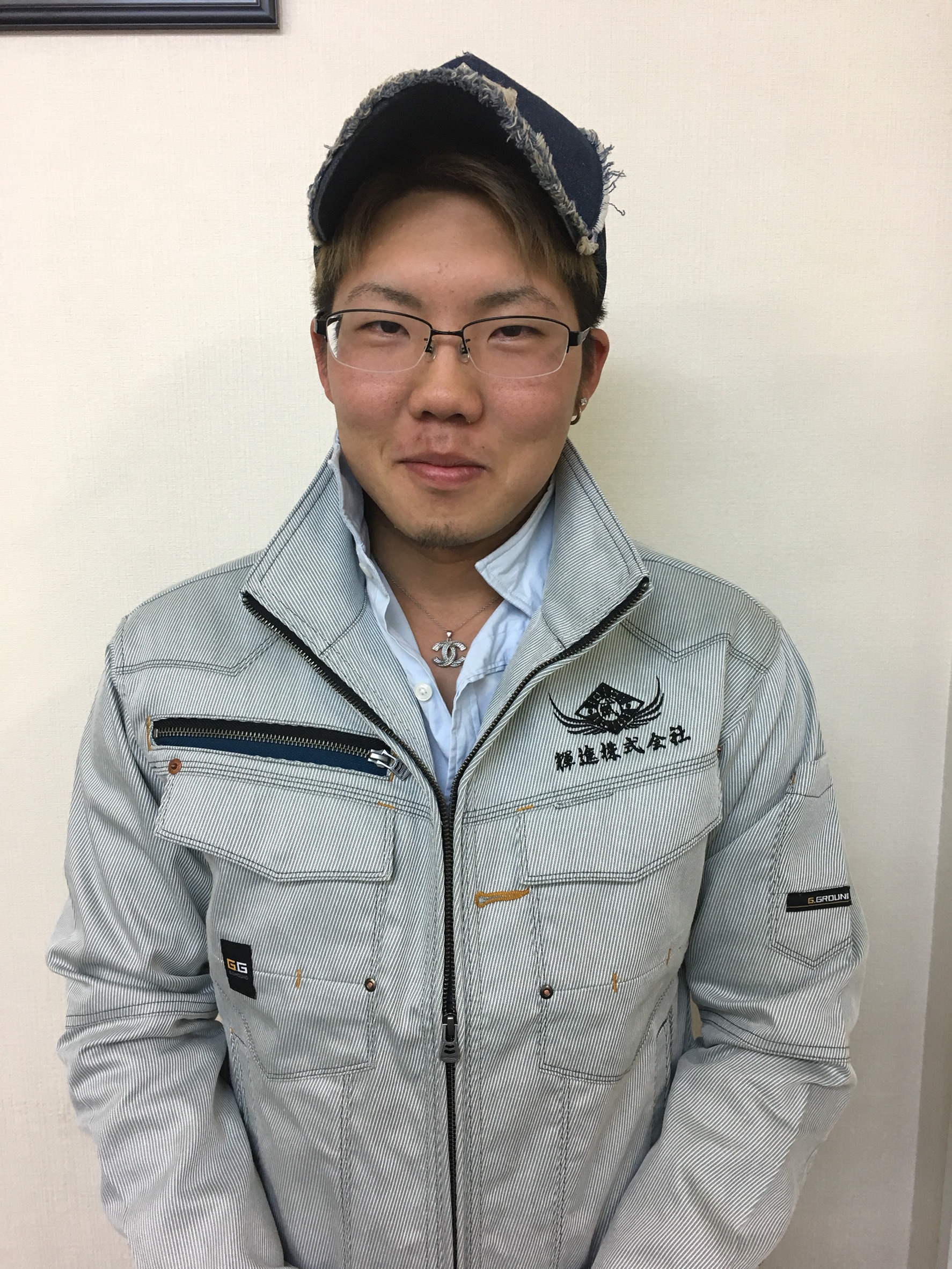 社長から声を掛けて頂き入社いたしました。輝進に入社する前は飲食メーカーに勤めており建築業界は初めてのチャレンジでした。入社当時は体力的にもつらかったです。けど社長や専務、先輩方のサポートのおかげで今では体力も付き率先して仕事をできるようになりました。